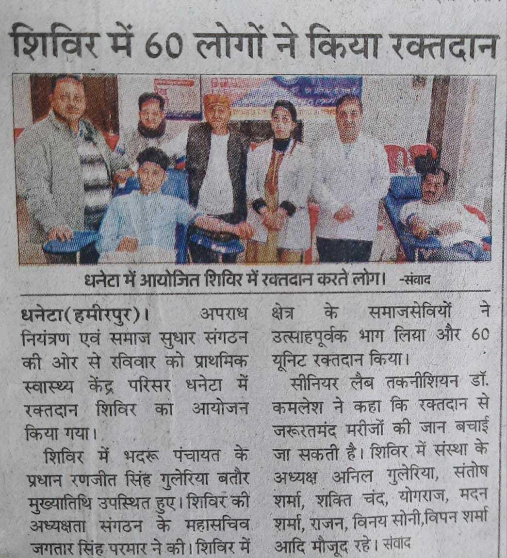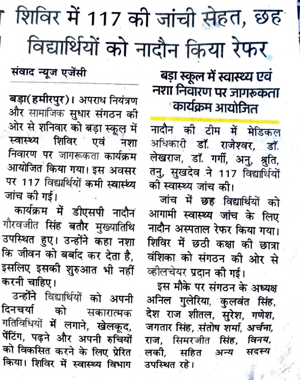 अपराध नियन्त्रण एवं समाज सुधार सॅगठन की तरफ से सहायता
