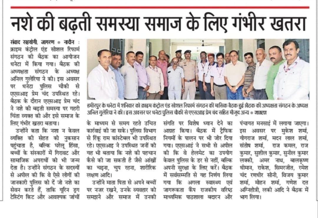 मासिक बैठक नशे के विरुद्ध और समाज सेवा के प्रति जागरूक
