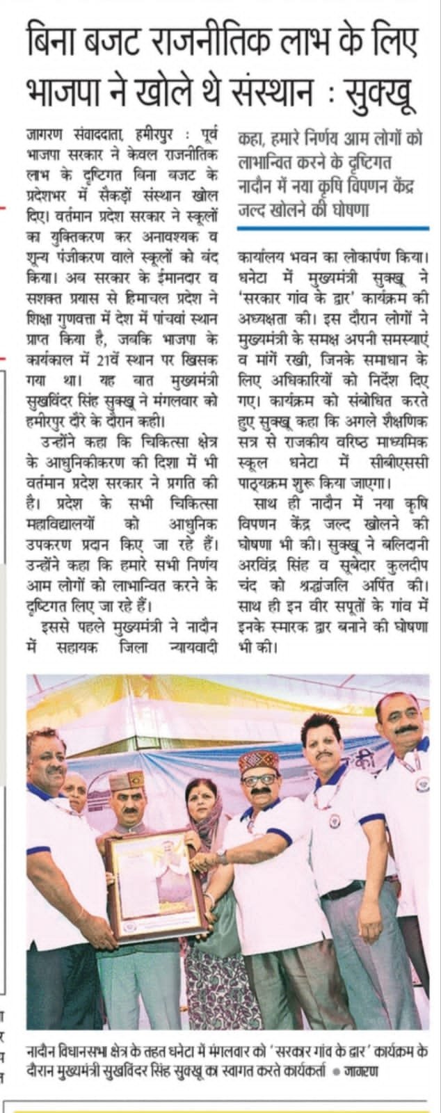 धनेटा आने पर माननीय मुख्यमंत्री श्री सुखविंदर सिंह सुक्खू जी का स्वागत