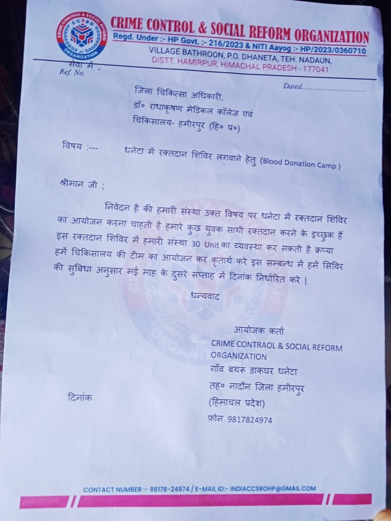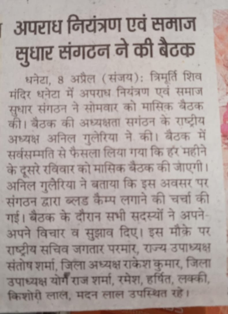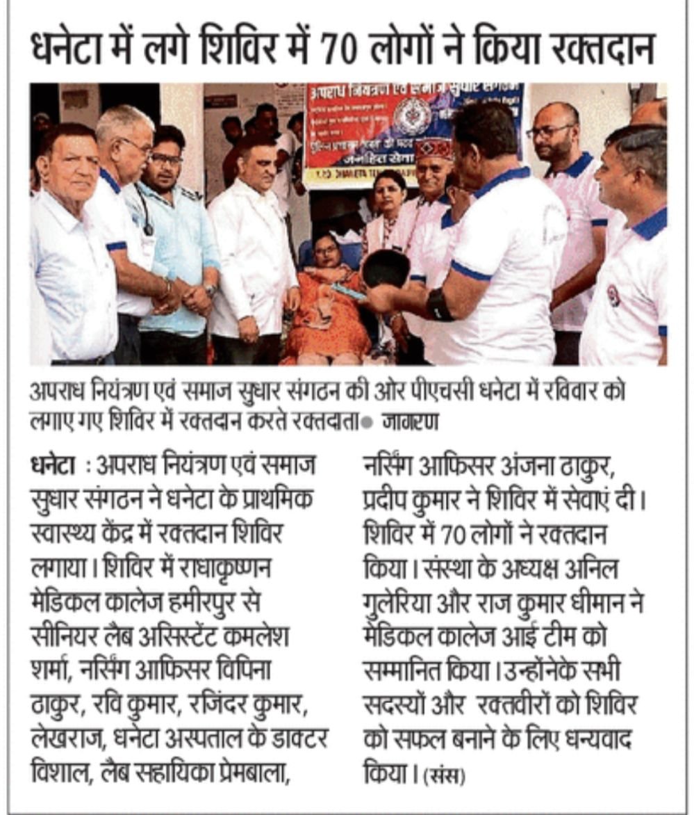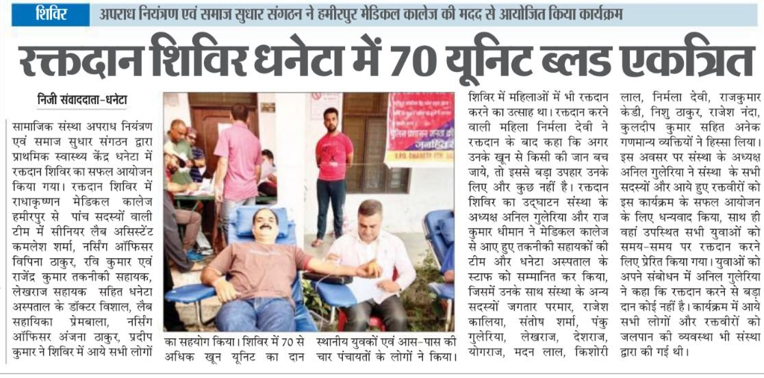 अपराध नियन्त्रण एवं समाज सुधार सॅगठन की तरफ से सहायता