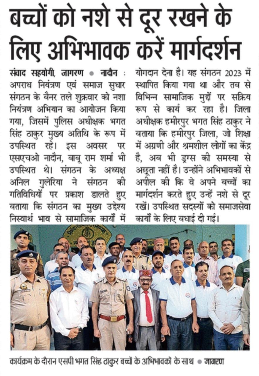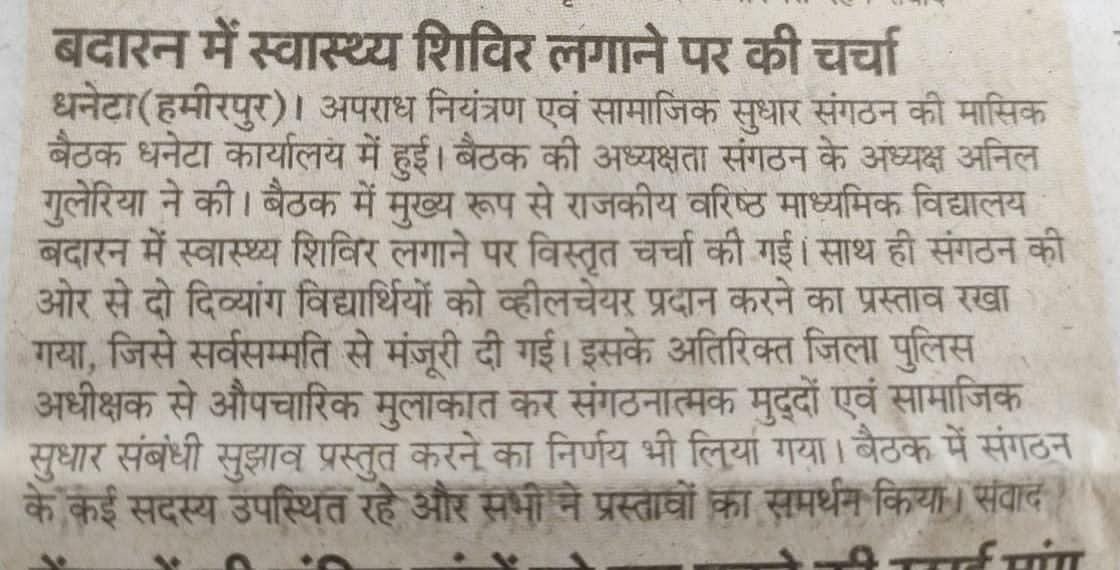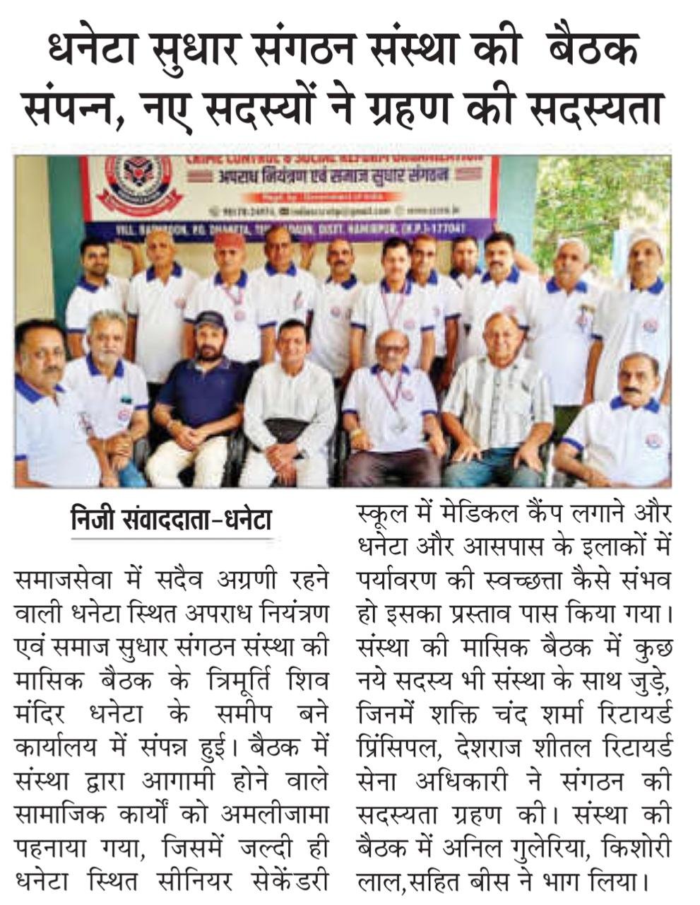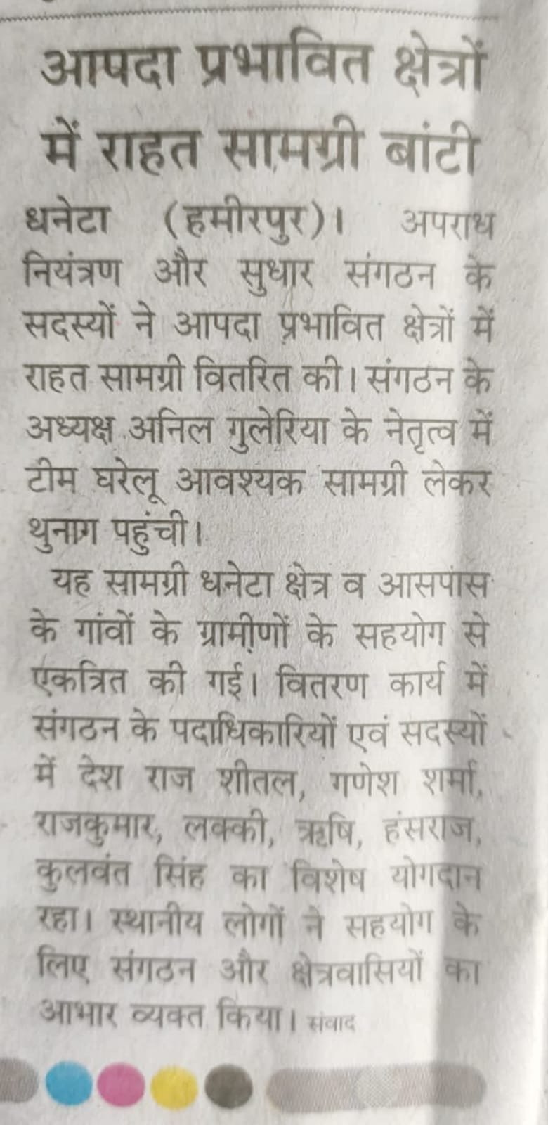 अपराध नियन्त्रण एवं समाज सुधार सॅगठन की तरफ से सहायता