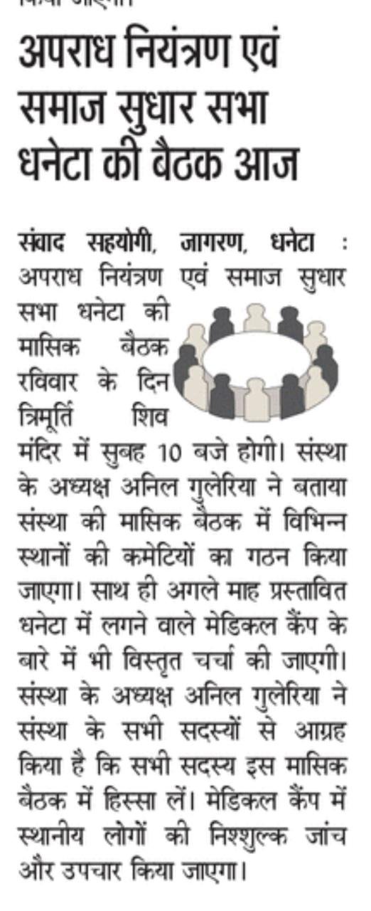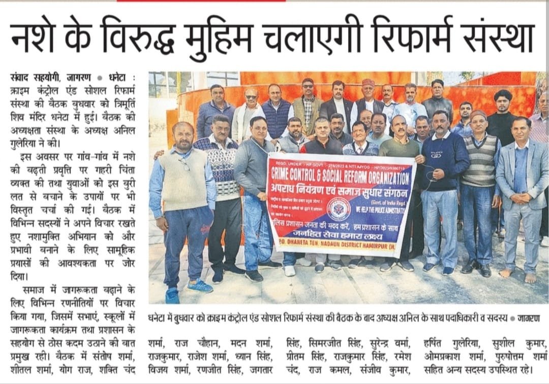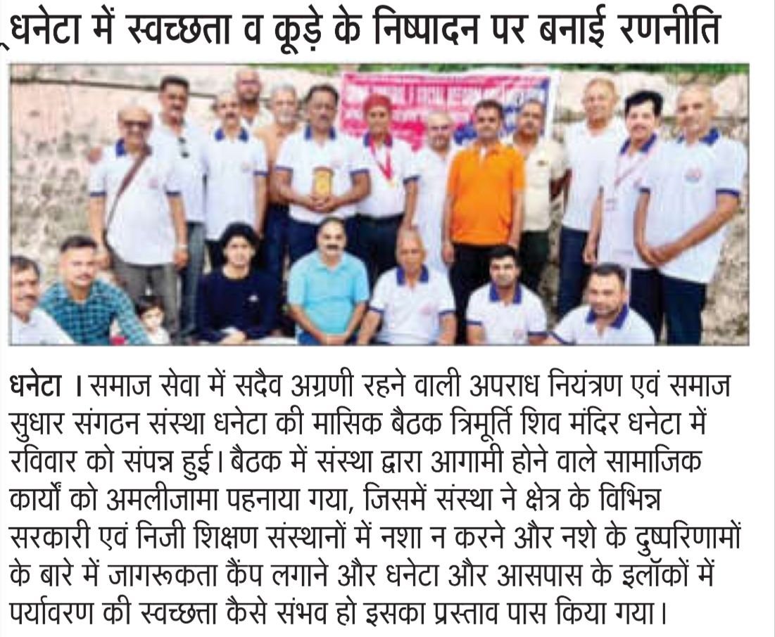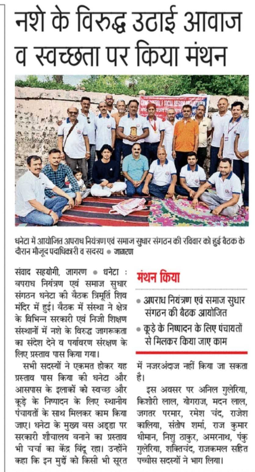 मासिक बैठक नशे के विरुद्ध और समाज सेवा के प्रति जागरूक