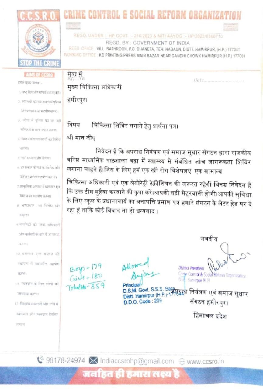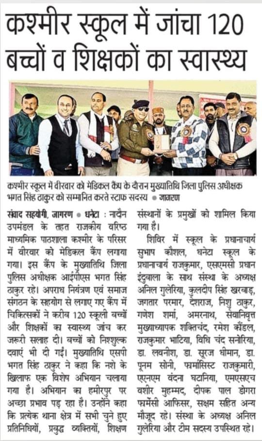 सीनियर सेकेंडरी स्कूल कश्मीर में स्वास्थ्य चिकित्सा शिविर का आयोजन